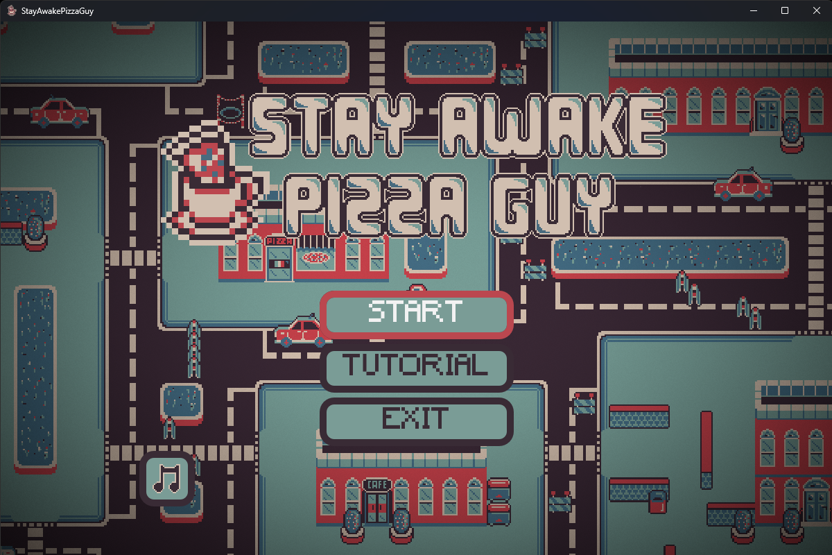 Stay Awake Pizza Guy is a pixel art arcade game where you play as a pizza delivery guy stuck on a long night shift.